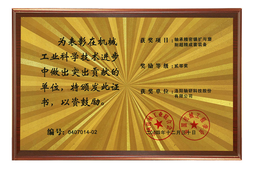 在機(jī)械工業(yè)科學(xué)技術(shù)進(jìn)步中做出突出貢獻(xiàn)的單位二等獎(jiǎng)