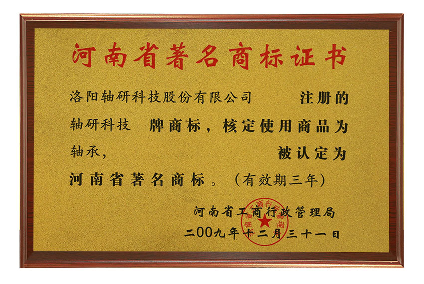 河南省著名商標(biāo)證書