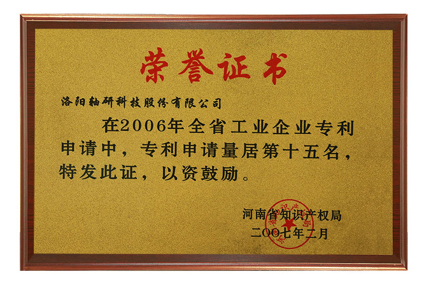 在2006年知識(shí)產(chǎn)權(quán)工作中成績(jī)突出,被評(píng)為河南省知識(shí)產(chǎn)權(quán)系統(tǒng)先進(jìn)集體