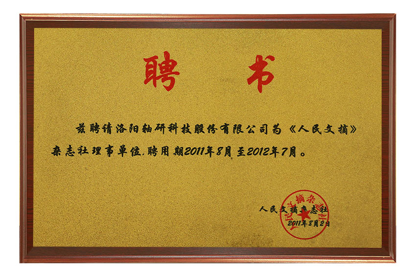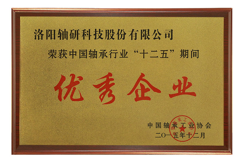 榮獲中國軸承行業(yè)“十二五”期間優(yōu)秀企業(yè)